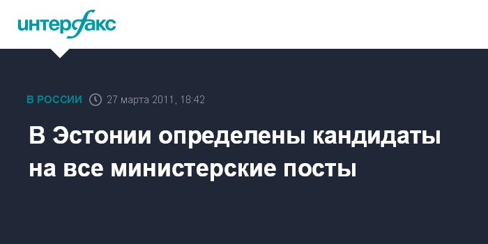 Таллин. 27 марта. INTERFAX.RU - В Эстонии совет уполномоченных партии Союз Отечества-Республика (СОР) назвал в воскресенье кандидатов на министерские посты, отведенные этой политической организации. Пост министра обороны предложен дважды экс-премьеру, председателю партии Марту Лаару (Mart Laar), сообщило правление партии. Нынешний министр обороны Яак Аавиксоо (Jaak Aaviksoo) займет пост министра образования и науки. Министерство внутренних дел возглавит нынешний генеральный секретарь партии Кен-Марти Вахер (Ken-Marti Vaher). Портфель министра экономики и коммуникаций сохранит за собой Юхан Партс (Juhan Parts), министром сельского хозяйства останется Хелир-Вальдор Сеэдер (Helir-Valdor Seeder), министерством по делам регионов продолжит руководить Сийм-Вальмар Кийслер (Siim-Valmar Kiisler).