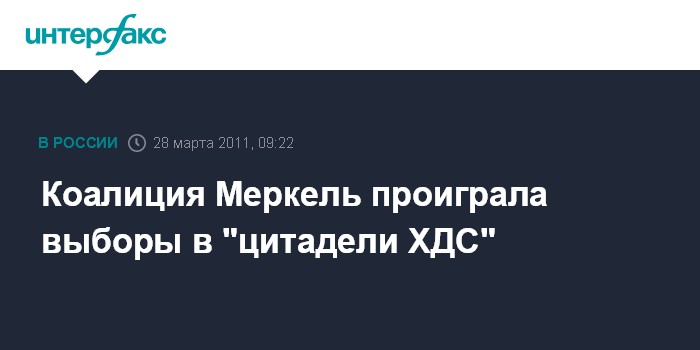 Майнц. 28 марта. INTERFAX.RU - Правящая коалиция Германии - Христианско-Демократический союз (ХДС) в союзе со свободными демократами - потерпела поражение на выборах в юго-западных землях ФРГ, передает Deutsche Welle.