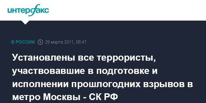 Установлены все террористы, участвовавшие в подготовке и исполнении прошлогодних взрывов в метро Москвы - СК РФ