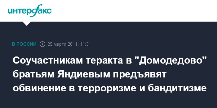 Соучастникам теракта в "Домодедово" братьям Яндиевым предъявят обвинение в терроризме и бандитизме