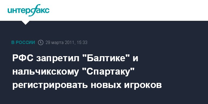 ФК "Балтика" (Калининград) запрещено регистрировать новых футболистов до момента оплаты имеющейся задолженности перед футболистами Лебедевым и Тимофеевым. К ФК "Спартак" (Нальчик) применены аналогичные санкции до оплаты долгов по зарплате перед Хатаженковым.