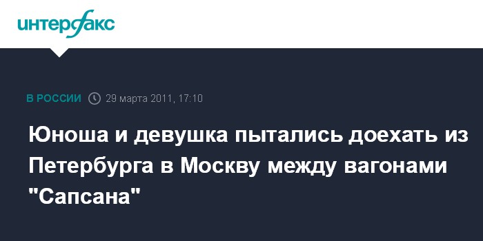 Санкт-Петербург. 29 марта. INTERFAX.RU - В Петербурге задержали двоих жителей Подмосковья, которые хотели добраться до Москвы, привязав себя к "Сапсану", сообщает во вторник управление на транспорте МВД РФ по Северо-Западному федеральному округу.