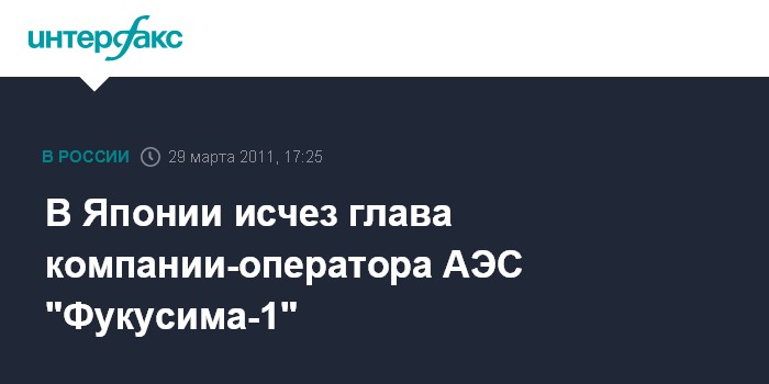 Вашингтон. 29 марта. INTERFAX.RU - Президент японской компании-оператора аварийной АЭС "Фукусима-1" TEPCO Масатака Симицу не появлялся у себя дома в Токио более двух недель, сообщает во вторник американская газета Washington Post.