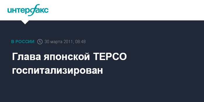 Токио. 30 марта. INTERFAX.RU - Президент японской компании Tokyo Electric Power Co.(TEPCO), оператора аварийной АЭС "Фукусима-1", Масатака Симидзу в среду был госпитализирован с повышенным давлением.