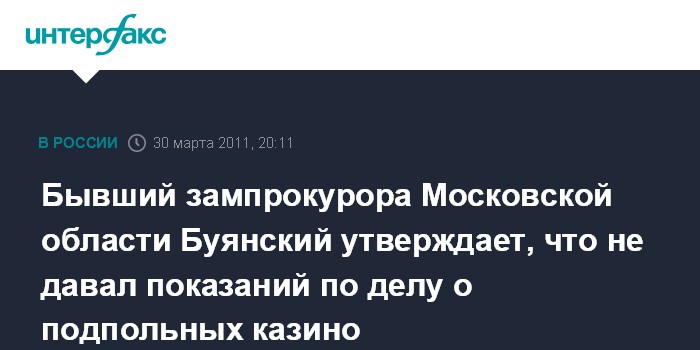 В среду в ряде СМИ появилась информация о том, что Буянский якобы является тайным свидетелем по делу о незаконном игорном бизнесе в Подмосковье, в материалах которого всплыло имя сына генерального прокурора Ю.Чайки - 35-летнего Артема.