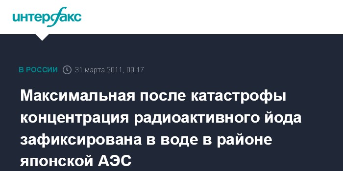 Максимальная после катастрофы концентрация радиоактивного йода зафиксирована в воде в районе японской АЭС
