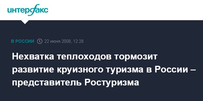 "Нехватка теплоходов - одна из основных причин, тормозящих развитие круизного туризма в стране. У нас не хватает не только теплоходов, но и пирсов, причалов, "зеленых стоянок". Многие реки заболочены и мелководны, и по ним невозможно плавать на теплоходах", - заметил собеседник агентства.