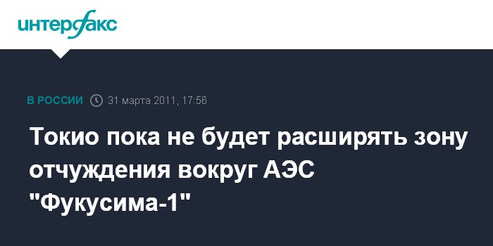 Токио. 31 марта. INTERFAX.RU - Правительство Японии сообщило в четверг о решении пока не расширять зону эвакуации жителей вокруг АЭС "Фукусима-1".