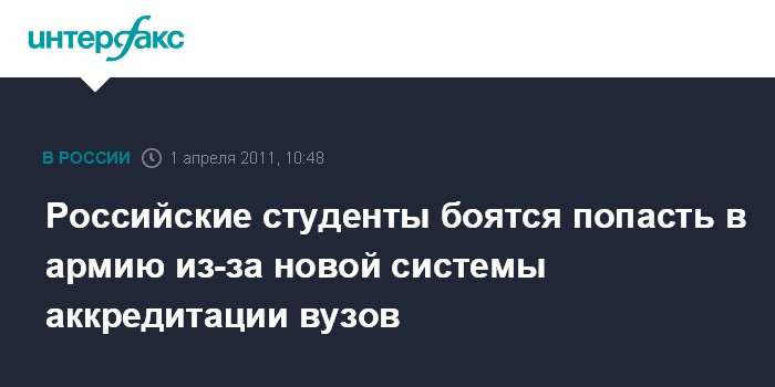 Москва. 1 апреля. INTERFAX.RU - Студенты вузов, перешедших на Болонскую систему, беспокоятся, что их могут призвать в армию, не дав закончить учебу, заявил "Интерфаксу" председатель "Российского студенческого союза" (РСС) Артем Хромов.