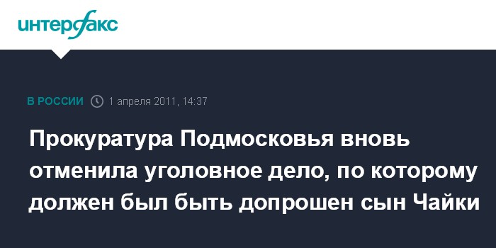 Прокуратура Подмосковья вновь отменила уголовное дело, по которому должен был быть допрошен сын Чайки