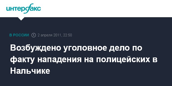 Нальчик. 2 апреля. ИНТЕРФАКС-ЮГ - В Кабардино-Балкарии возбуждено уголовное дело по факту посягательства на сотрудников полиции Нальчика, сообщили в субботу вечером агентству "Интерфакс - Юг" в следственном управлении СК РФ по КБР.