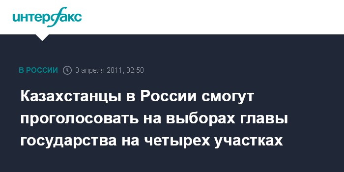 Москва. 3 апреля. ИНТЕРФАКС - Четыре избирательных участка для голосования на выборах президента Казахстана будут работать в воскресенье на территории России.