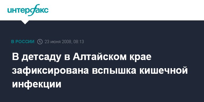Москва. 23 июня. INTERFAX.RU - Девять воспитанников дошкольного образовательного учреждения "Тополек" в селе Верх-Жилино Косихинского района Алтайского края пострадали от острой кишечной инфекции.