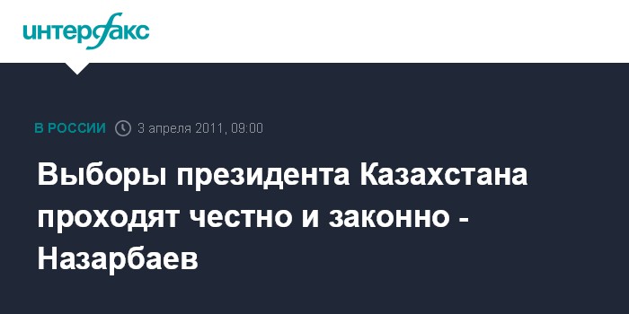Астана. 3 апреля. ИНТЕРФАКС-КАЗАХСТАН - Выборы президента Казахстана проходят честно и законно, заявил кандидат в президенты, действующий глава государства Нурсултан Назарбаев.