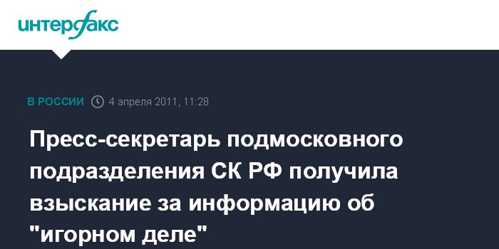 Пресс-секретарь подмосковного подразделения СК РФ получила взыскание за информацию об "игорном деле"
