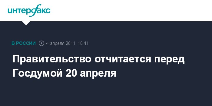 Москва. 4 апреля. INTERFAX.RU - Премьер-министр РФ Владимир Путин 20 апреля выступит в Госдуме с отчетом за 2010 год.