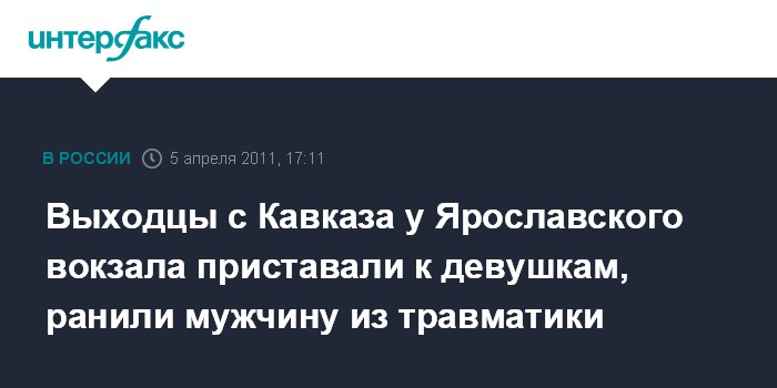 Москва. 5 апреля. INTERFAX.RU - На Ярославском вокзале столицы житель Ингушетии ранил из травматического пистолета прохожего после того, как получил отпор от девушки, с которой хотел познакомиться.