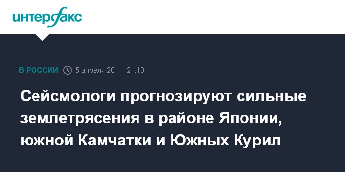 Южно-Сахалинск. 5 апреля. INTERFAX.RU - Сахалинские сейсмологи считают вероятным повторение сильного землетрясения в районе Японии, которое может вызвать новое цунами.