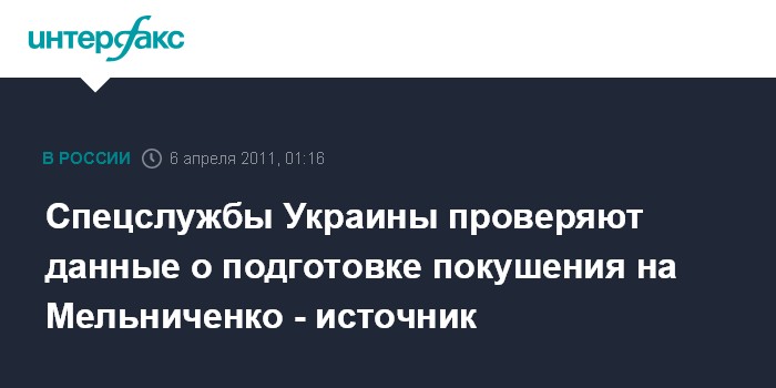 Киев. 6 апреля. ИНТЕРФАКС-УКРАИНА - Служба безопасности Украины проверяет информацию о подготовке возможного покушения на бывшего офицера Государственной охраны майора Николая Мельниченко.