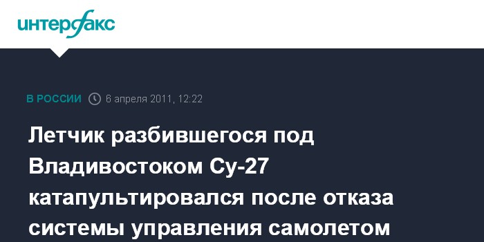 Ранее официальный представитель Минобороны РФ сообщил агентству, что авария истребителя Су-27 произошла в районе аэродрома "Центральная Угловая" (Приморский край) в 10:22 мск. По его словам, поисково-спасательная группа обнаружила летчика, который находился в удовлетворительном состоянии.