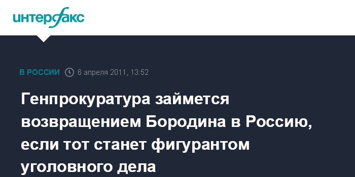 Генпрокуратура займется возвращением Бородина в Россию, если тот станет фигурантом уголовного дела