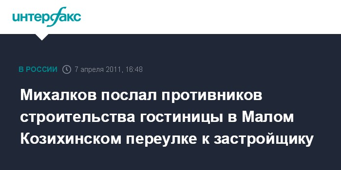 Михалков послал противников строительства гостиницы в Малом Козихинском переулке к застройщику