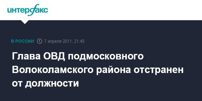 Начальник ОВД по Волоколамскому району отстранен от занимаемой должности, сообщил "Интерфаксу" начальник управления общественных связей МВД РФ генерал-майор милиции Валерий Грибакин.