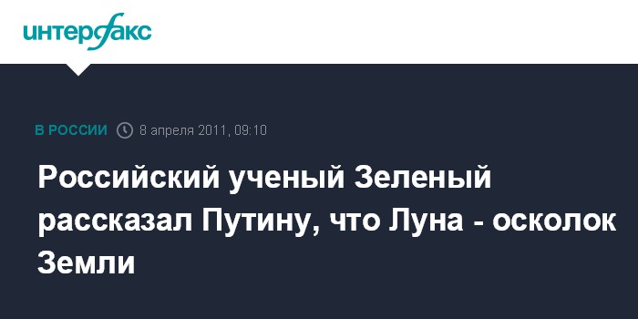 "Луна - это осколок Земли?" - спросил у директора ИКИ премьер-министр России Владимир Путин, рассматривая один из слайдов, продемонстрированных Зеленым во время совещания.