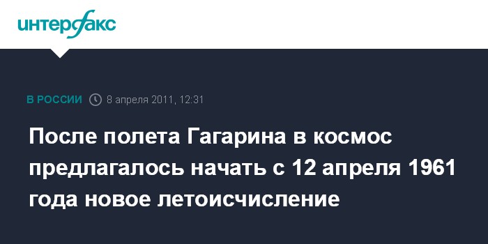 После полета Гагарина в космос предлагалось начать с 12 апреля 1961 года новое летоисчисление