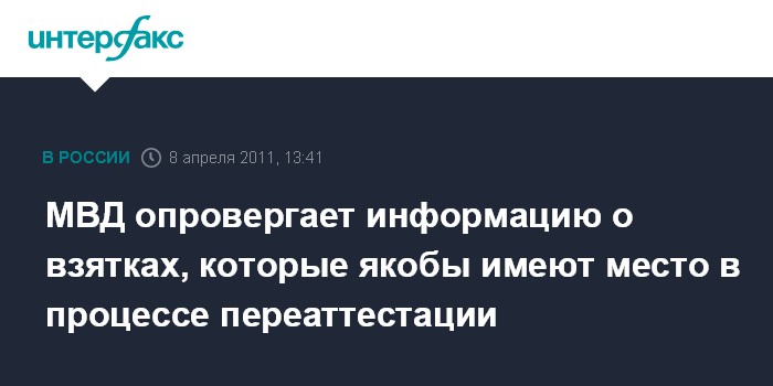 Москва. 8 апреля. INTERFAX.RU - МВД РФ опровергает информацию, озвученную накануне зампредом комитета Госдумы по безопасности Геннадием Гудковым, который заявил, что аттестация в органах внутренних дел проходит за взятки.