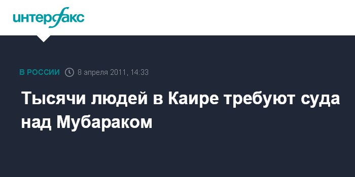 Лондон. 8 апреля. INTERFAX.RU - Около 3 тыс. человек в пятницу вышли на демонстрацию на площадь Тахрир в Каире с требованием привлечь к ответственности бывшего президента Египта Хосни Мубарака, сообщает в пятницу британская газета Guardian.