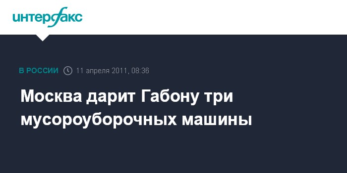 Москва. 11 апреля. INTERFAX.RU - Столичные власти подарят столице африканской республики Габон три бывшие в употреблении мусороуборочные автомашины, сообщил "Интерфаксу" источник в горадминистрации в понедельник.