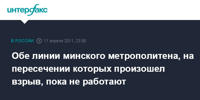 Минск. 11 апреля. INTERFAX.RU - Обе линии минского метрополитена пока не возобновили свою работу после взрыва на станции "Октябрьская" в понедельник вечером, сообщил агентству "Интерфакс-Запад" начальник "Минского метрополитена" Николай Андреев. "Пока не могу прогнозировать, когда возобновит работу первая линия (на этой ветке расположена станция "Октябрьская" - ИФ)", - сказал он.