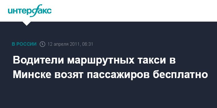 Москва. 12 апреля. ИНТЕРФАКС – В связи с произошедшим в понедельник в минском метро терактом водители минских маршрутных такси отказываются брать деньги за проезд, сообщает радиостанция "Коммерсант ФМ".