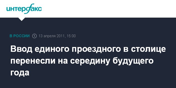 Москва. 13 апреля. INTERFAX.RU - Единый проездной билет на все виды транспорта в Москве появится в середине 2012 года, сообщил заместитель мэра столицы Николай Лямов.