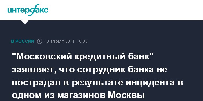 "Московский кредитный банк" заявляет, что сотрудник банка не пострадал в результате инцидента в одном из магазинов Москвы