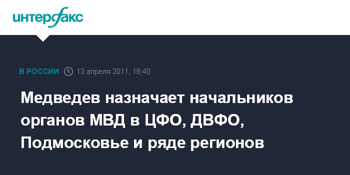 Медведев назначает начальников органов МВД в ЦФО, ДВФО, Подмосковье и ряде регионов