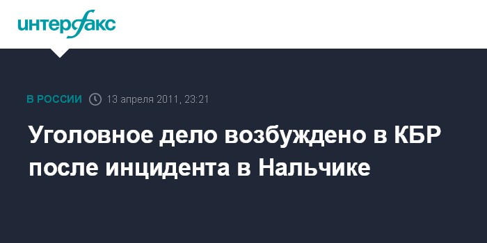 Нальчик. 13 апреля. ИНТЕРФАКС-ЮГ - В Кабардино-Балкарии возбуждено уголовное дело по факту оказания сопротивления сотрудникам полиции в Нальчике, сообщили агентству "Интерфакс-Юг" в Следственном управлении СКР по КБР в среду.
