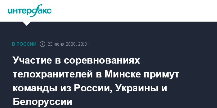 Минск. 23 июня. ИНТЕРФАКС-ЗАПАД - Участие в международных соревнованиях телохранителей в Минске примут десять команд из России, Украины и Белоруссии, сообщил в понедельник на пресс-конференции в Минске председатель оргкомитета турнира Алексей Шабуневич.
