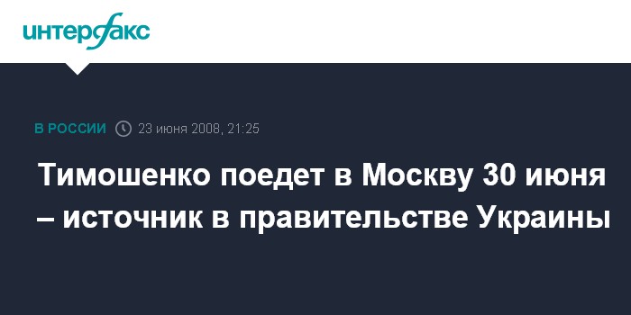 Киев. 23 июня. ИНТЕРФАКС-УКРАИНА - Премьер-министр Украины Юлия Тимошенко посетит Москву с визитом 30 июня, сообщили агентству "Интерфакс-Украина" в понедельник источники в кабинете министров.