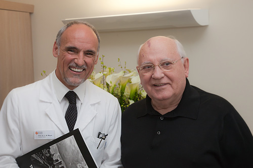 "Михаил Сергеевич Горбачев находится сейчас в Мюнхене в больнице Schon Klinik Munchen Harlaching, где несколько дней назад ему была сделана операция на позвоночнике. Лечащий врач, медицинский директор клиники профессор Майер сообщил, что операция, длившаяся около 2 часов, прошла успешно, и пациент идет на поправку", - сообщили в фонде.