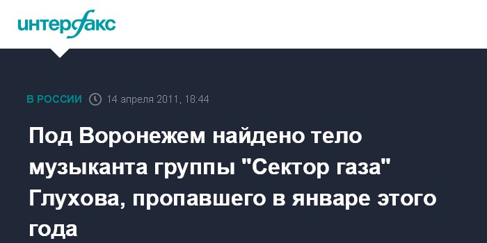 Под Воронежем найдено тело музыканта группы "Сектор газа" Глухова, пропавшего в январе этого года