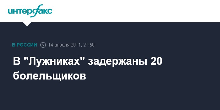"За различные правонарушения на территории Большой спортивной арены "Лужники" задержано 20 фанатов "Спартака", - сообщил "Интерфаксу" руководитель оперативного штаба по обеспечению безопасности, заместитель начальника МОБ ГУВД Москвы, командир столичного ОМОН Вячеслав Хаустов.