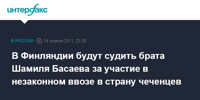 Хельсинки. 14 апреля. ИНТЕРФАКС - Брат чеченского террориста Шамиля Басаева предстанет в пятницу в Финляндии перед судом города Вантаа по делу об организации незаконной миграции чеченцев в Финляндию.