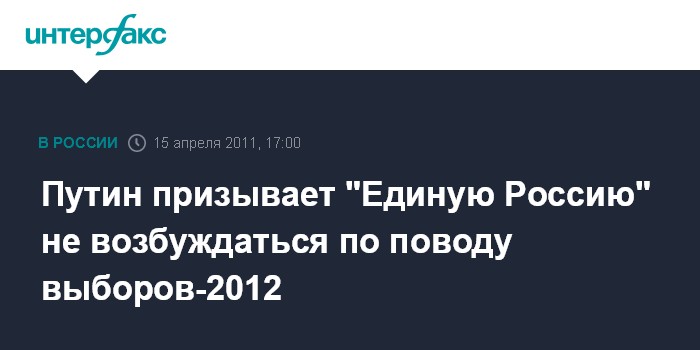 Путин призывает "Единую Россию" не возбуждаться по поводу выборов-2012