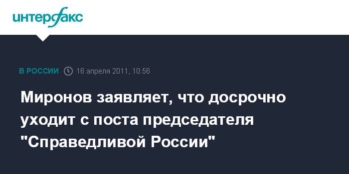 Миронов заявляет, что досрочно уходит с поста председателя "Справедливой России"