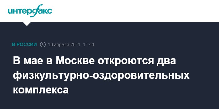 В мае в Москве откроются два физкультурно-оздоровительных комплекса