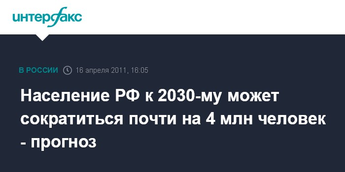 Население РФ к 2030-му может сократиться почти на 4 млн человек - прогноз