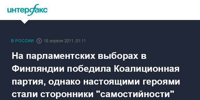 На парламентских выборах в Финляндии победила Коалиционная партия, однако настоящими героями стали сторонники "самостийности"