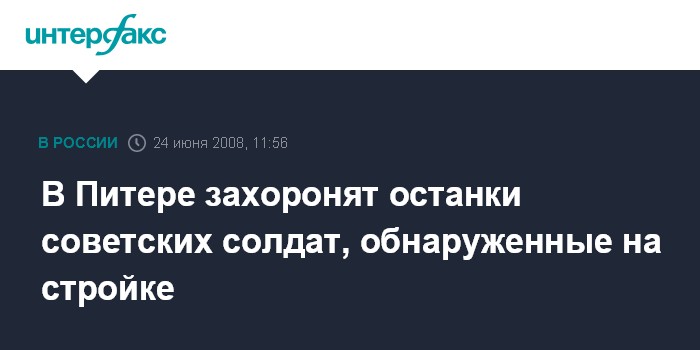 Санкт-Петербург. 24 июня. INTERFAX.RU - Hа Иликовском кладбище г. Ломоносова под Питером завтра захоронят останки солдат, обнаруженные на стройке в Стрельне два года назад.